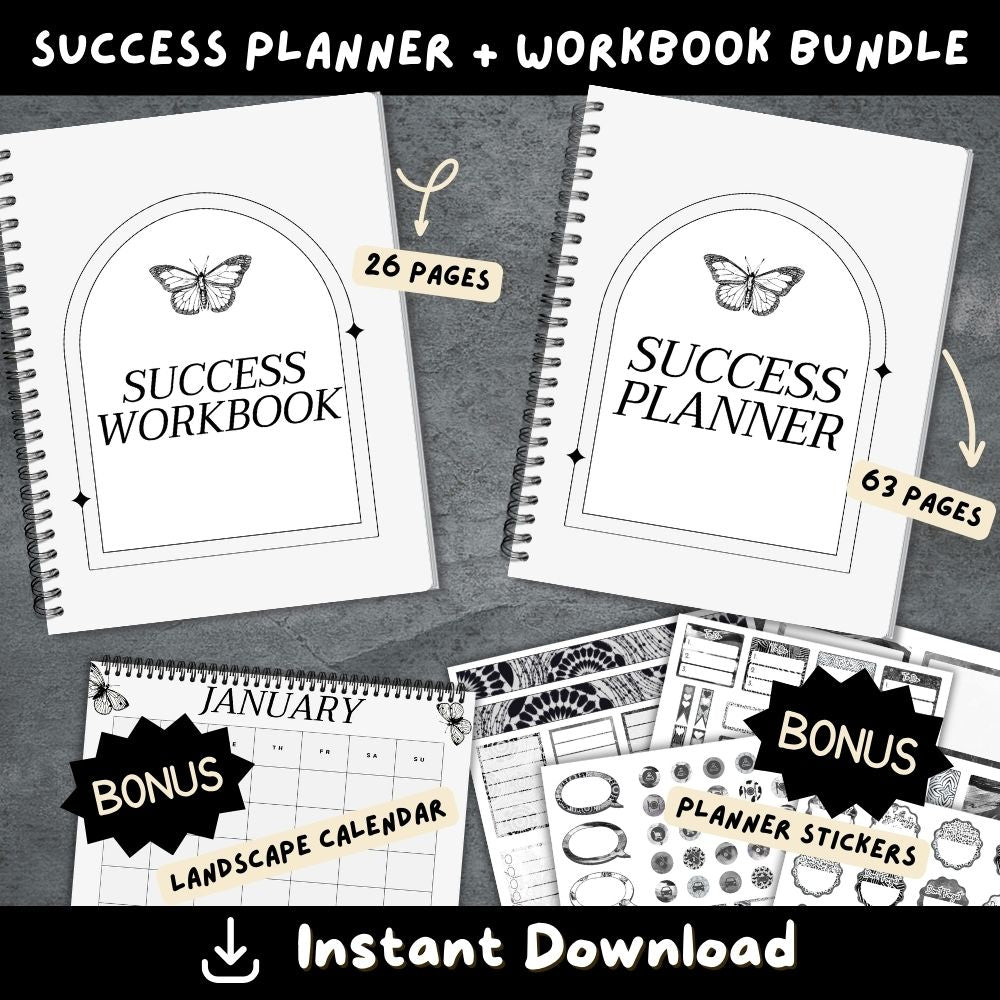 - PLR Black & White Success Planner & Workbook (Plus matching planner stickers)