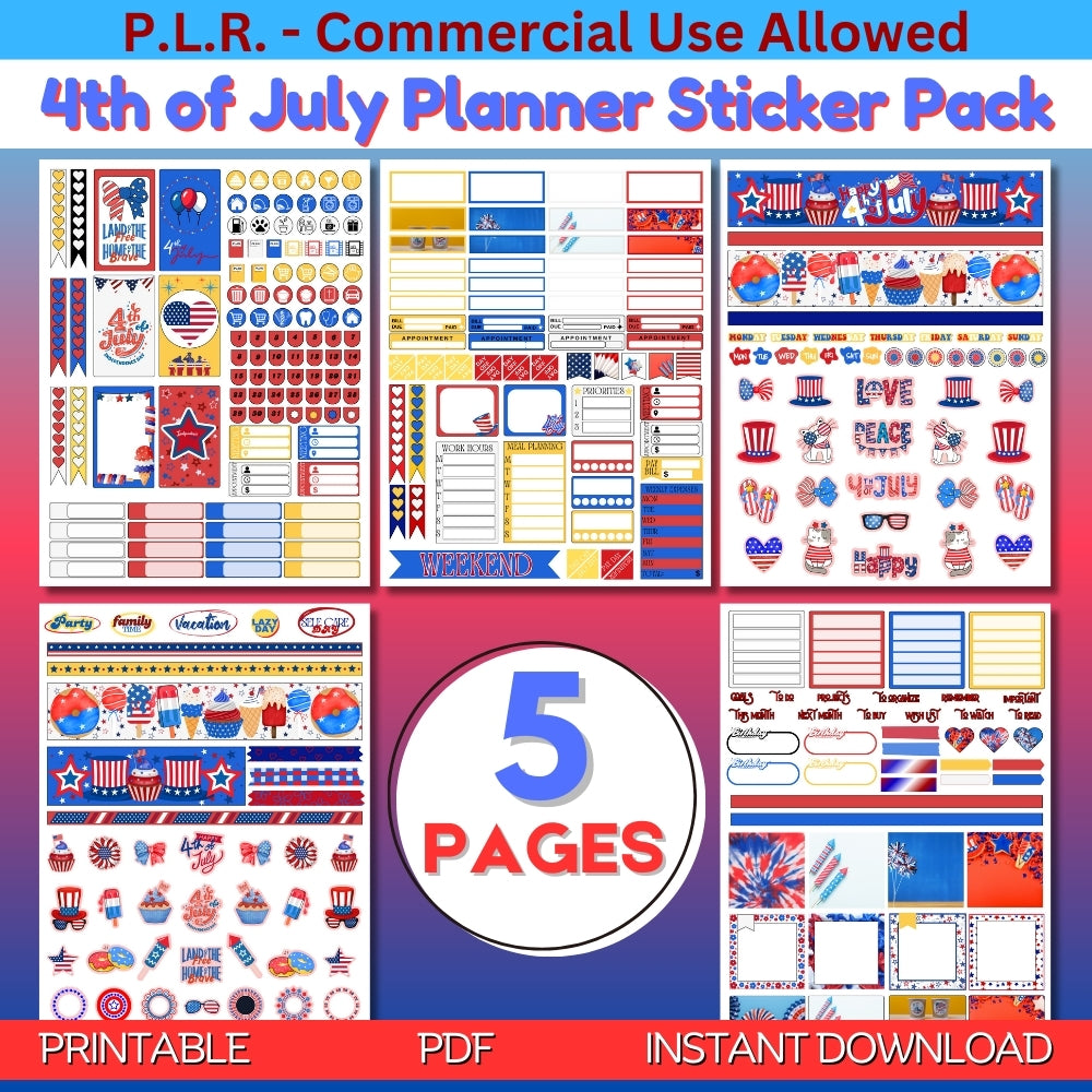 - Instant PDF Download (5 pages) of the PLR 4th of July Planner Stickers