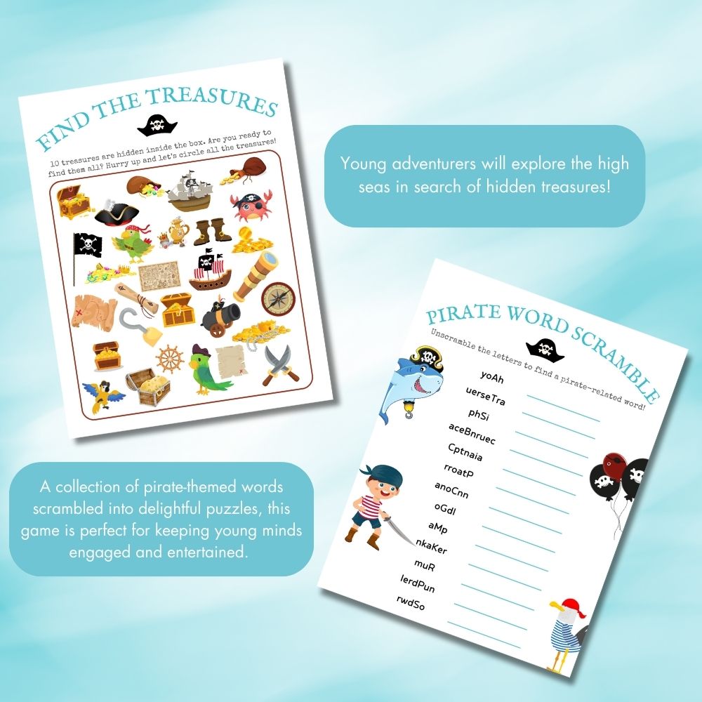 Unleash endless entertainment with our PLR Aqua Pirate Birthday Party Game Bundle! Perfect for kids' birthday parties, this bundle includes 13 printable pages of pirate-themed games that you can resell. Get ready for a swashbuckling good time!