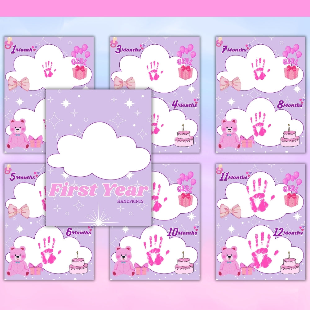 This is a printable PLR Baby's First Year Handprints (digital download). Nothing will be shipped to you.