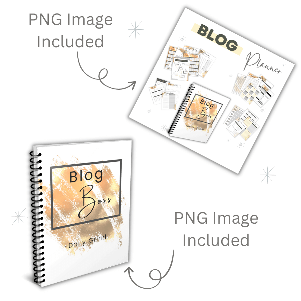 - Matching PNG Spiral Blog Planner Mockup (on a transparent background so you can insert it into your own images easily)