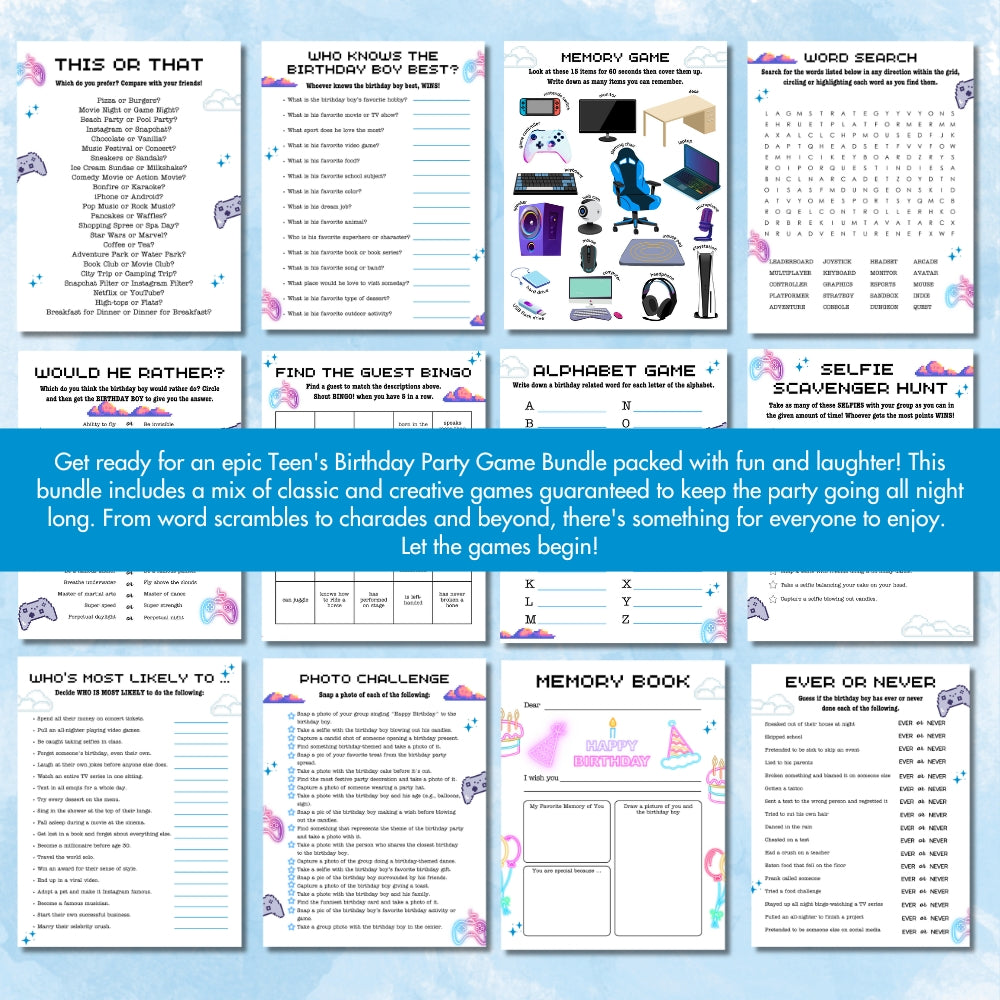 Get the party started with our PLR Blue Teen Birthday Party Game Bundle! This printable bundle, featuring a fun gamer theme, includes 23 pages of games that you can easily resell. Perfect for teens, this bundle is sure to make any birthday celebration a blast. Grab yours now!