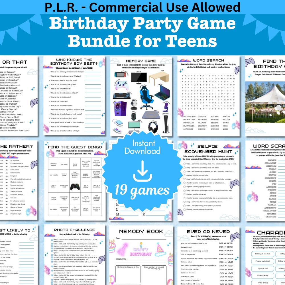 - Instant PDF Download (23 pages) of the PLR Blue Teen Birthday Party Game Bundle