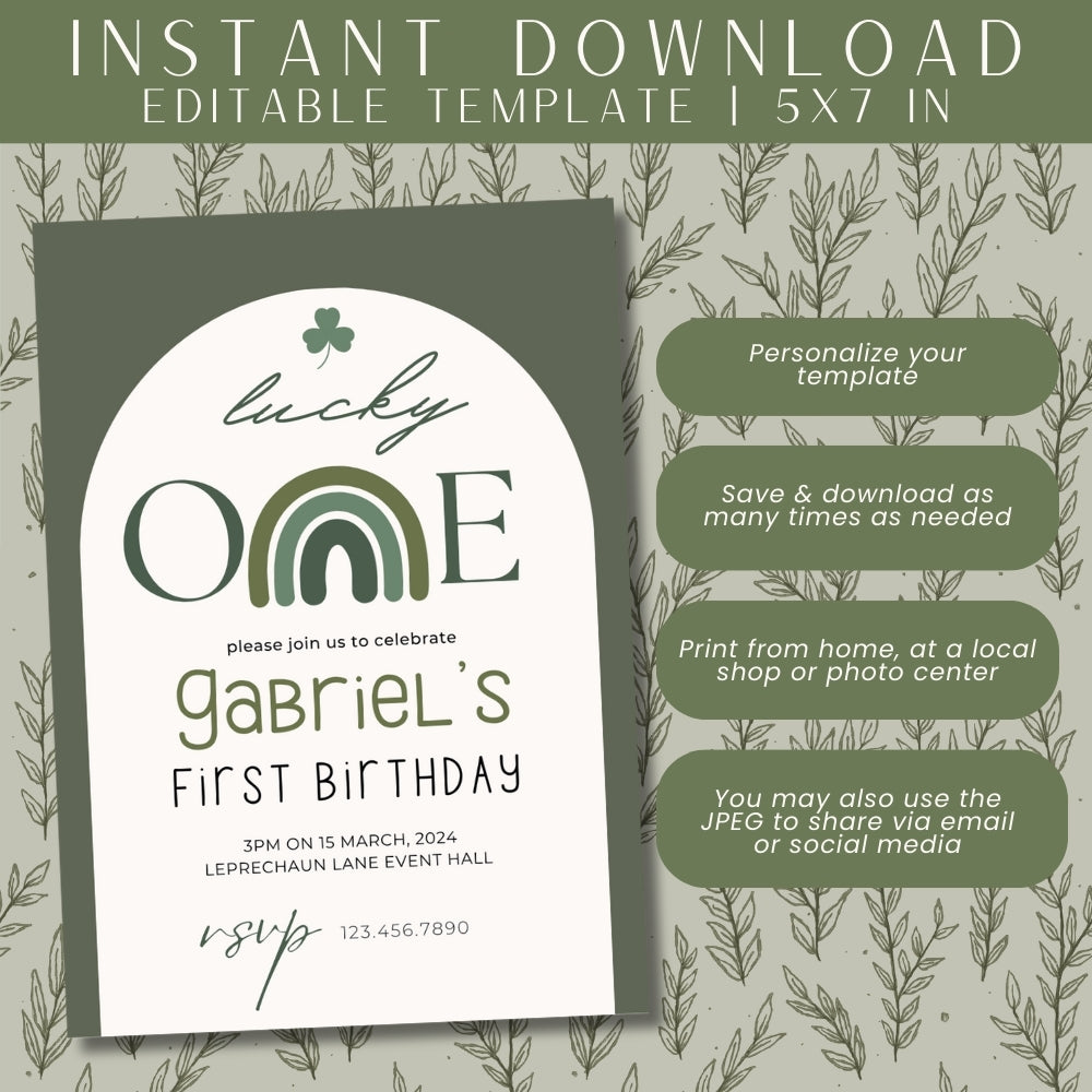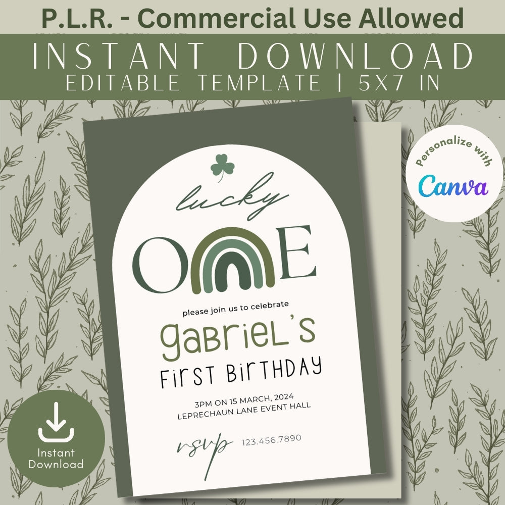 - Canva Templates (2 pages) of the PLR Boys St Patricks Day Birthday Invitation
