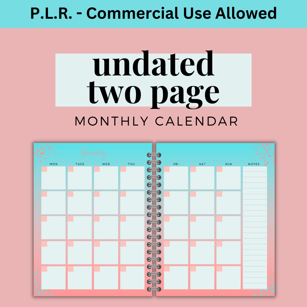 PLR Calendar - 2 Page Undated (Aqua/Pink)