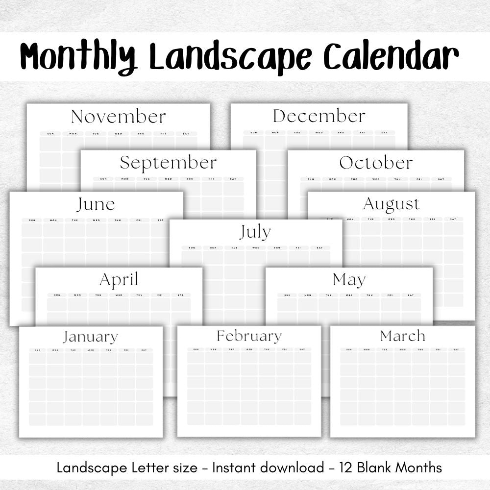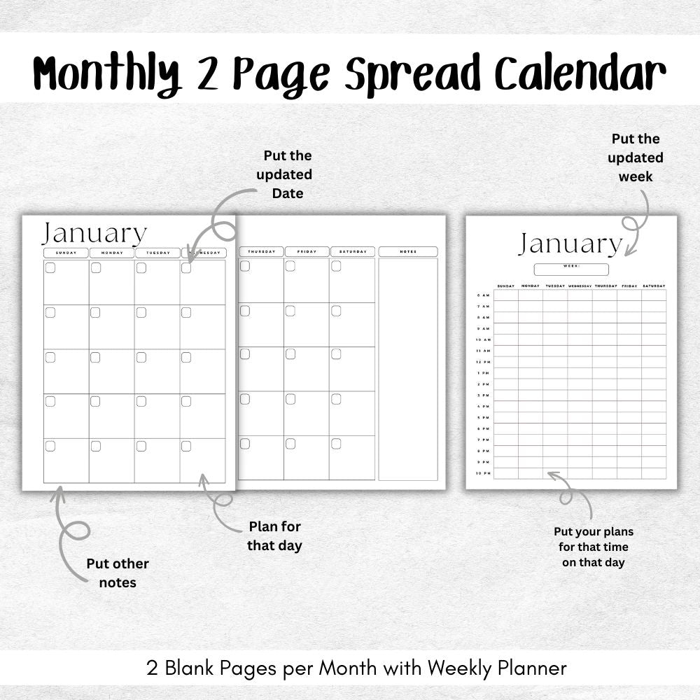 It includes a matching landscape calendar, two-page spread monthly planning pages, and "done-for-you" promotional images.