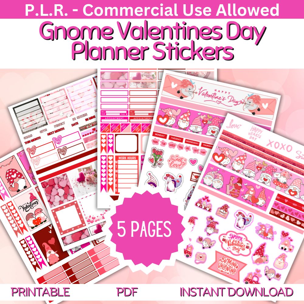 This is a printable PLR Gnome Valentine Day Planner Sticker Pack (digital download). Nothing will be shipped to you.