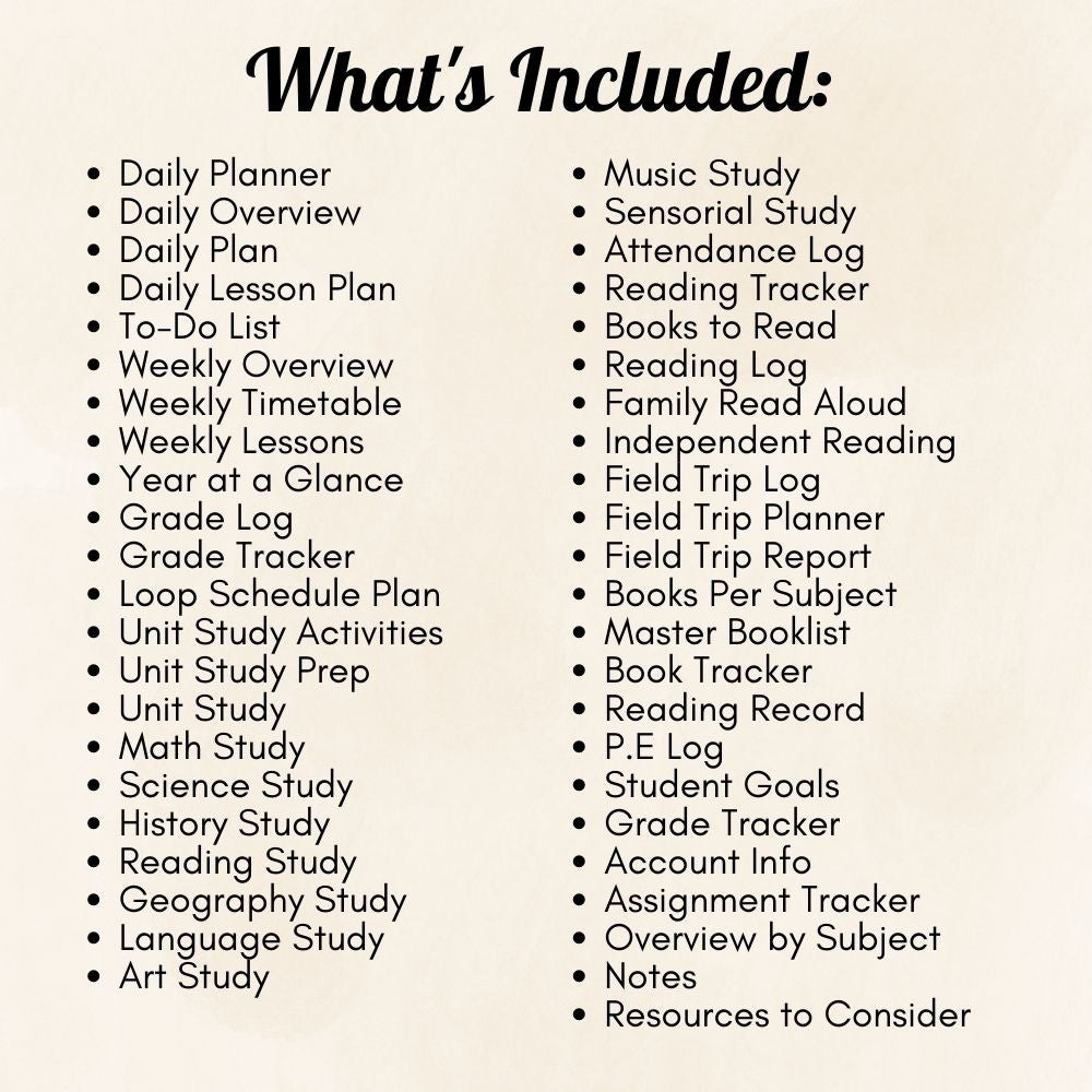 PAGES INCLUDED IN THIS HOMESCHOOL PLANNER OR BINDER...