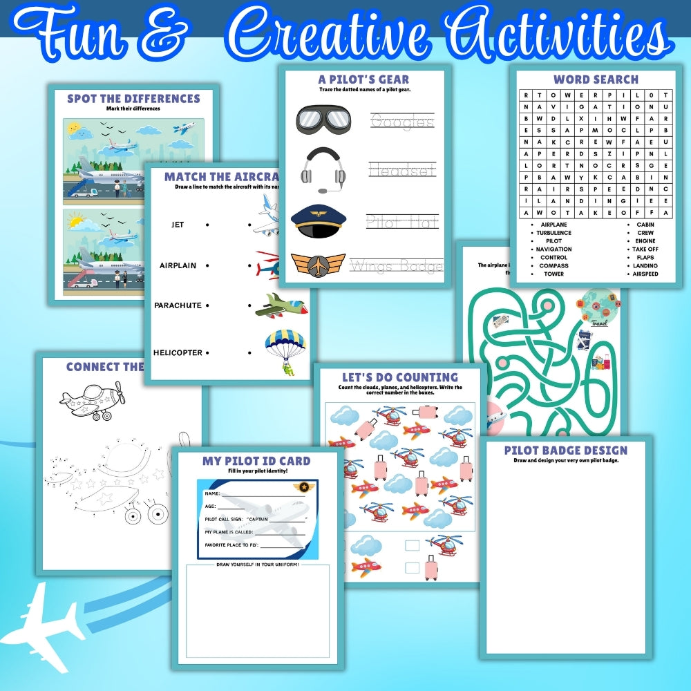 This is a printable PLR Kids Pilot Themed Activity Pack (digital download). Nothing will be shipped to you.