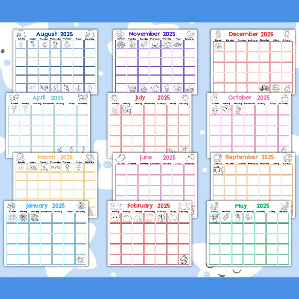 - 25 Page PDF Kids Traceable Monthly Calendar