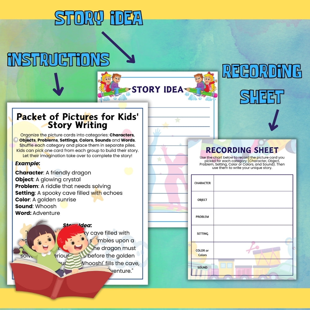 You will also receive a zip file that contains PDF copies of the Packet of Pictures for Kids's Story Writing PNG images for advertising.