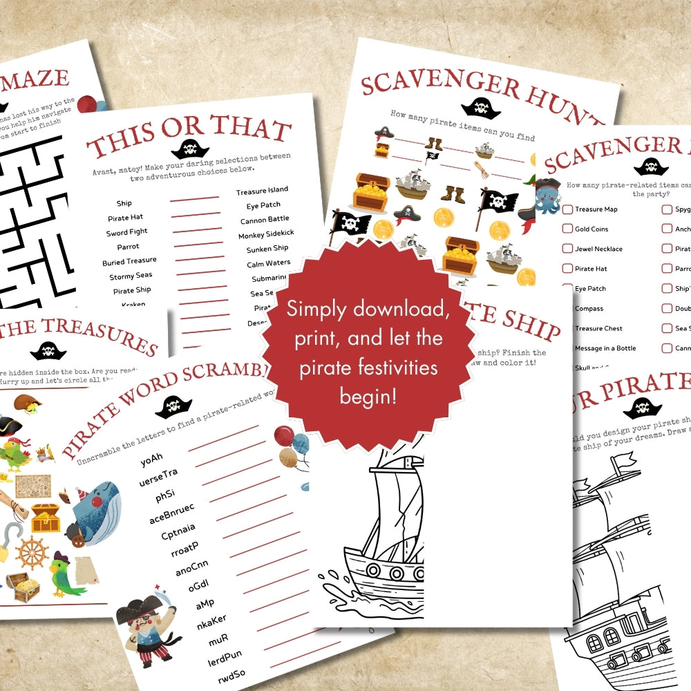 This is a printable PLR Pirate Birthday Party Game Bundle (digital download). Nothing will be shipped to you.