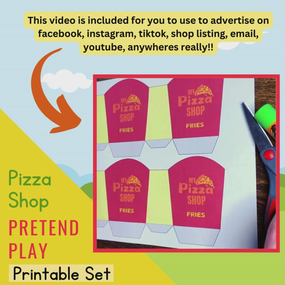 Introducing the PLR Pizza Shop Dramatic Pretend Play Printables Set. With 52 pages of printable fun, your child can build their own pizza box and french fry box with included kid-friendly templates. Perfect for imaginative play and endless possibilities!