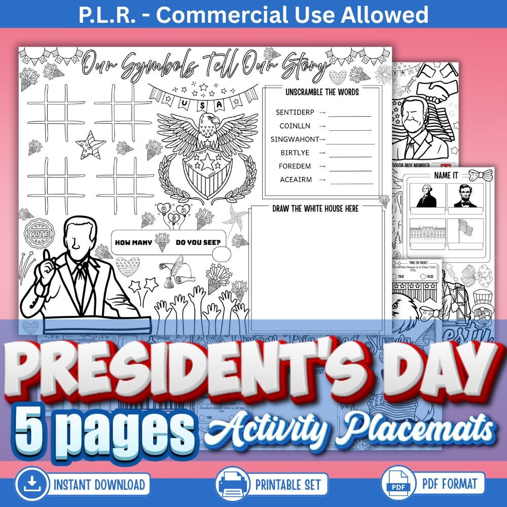 - Instant PDF Download (5 pages) of the PLR President's Day Placemat Activity Set