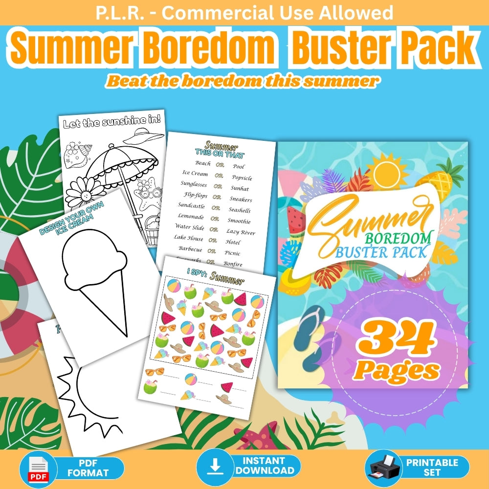 - Instant PDF Download (34 pages) of the PLR Summer Boredom Buster Pack