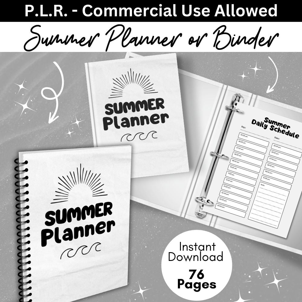 - Instant PDF Download (76 pages) PLR Summer Planner in Black and White
