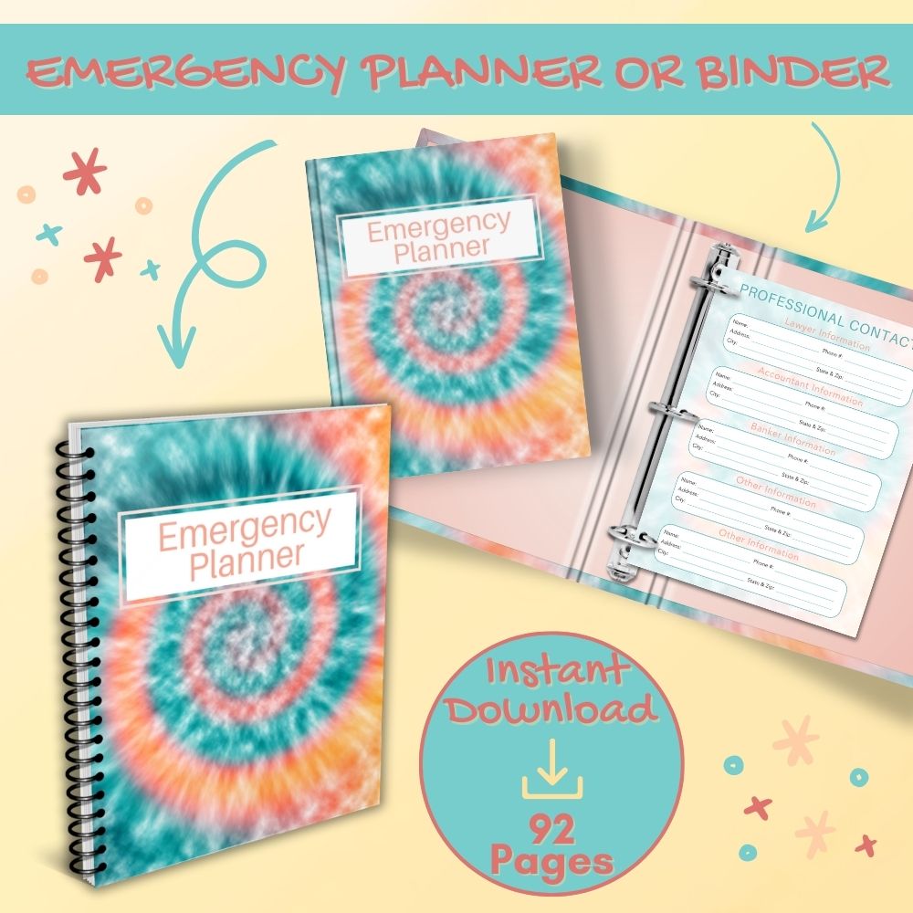 - Instant PDF Download (92 pages) PLR Tie Dye Emergency Planner